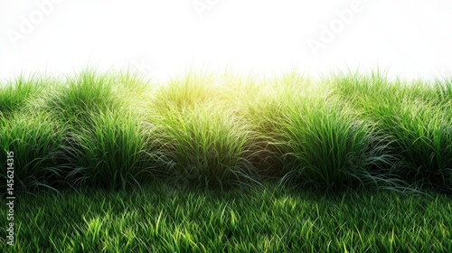 Lush green grass clumps against a bright white background. Natural and vibrant