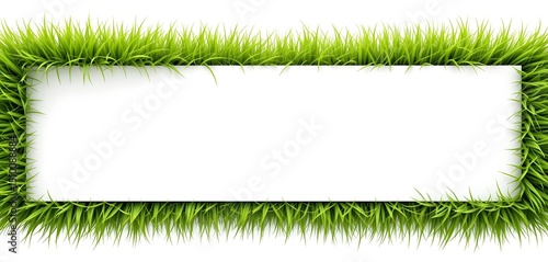 Lush Green Grass Frame Border on White Background with Blank Center Space for Text or Design – Nature Inspired Minimalist Botanical Template