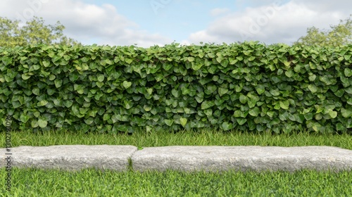 Lush Green Hedge with Stone Path in Tranquil Garden Setting