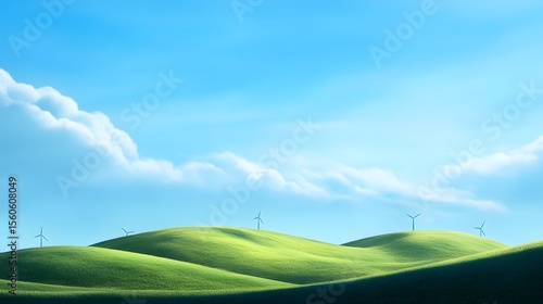 Lush green hills under a vibrant blue sky.