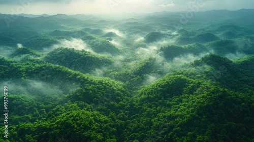 Lush Green Hills with Misty Atmosphere in Nature