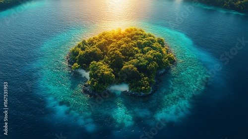 Lush Green Island Surrounded By Turquoise Ocean Waters