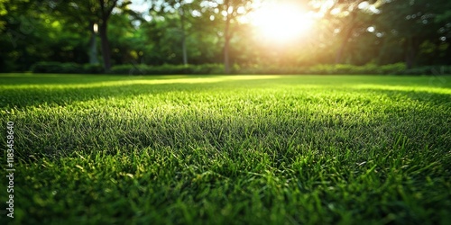 Lush green lawn bathed in morning light showcases the beauty of a green lawn, inviting tranquility and peace to start the day in this serene green lawn setting.