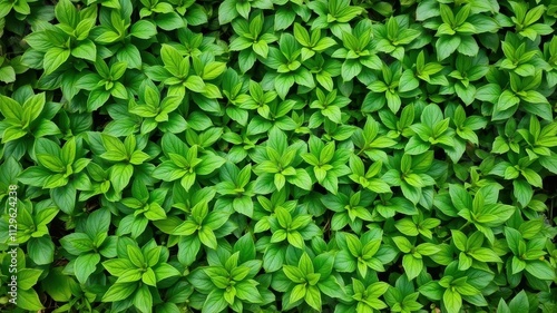 Lush green leaves creating a dense foliage texture, forest, harmony