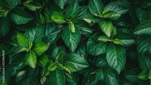 Lush green leaves densely layered overhead view showcasing dark green hues with varying textures on a natural background ideal for design work