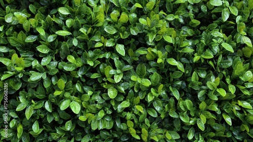 Lush green leaves form a dense, healthy hedge. Use as background for natural, fresh, or garden themes.