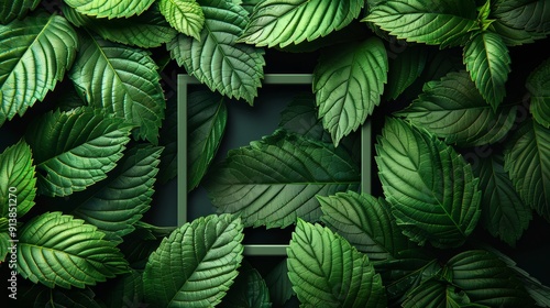 Lush Green Leaves Forming a Natural Frame Over Dark Background in Soft Lighting