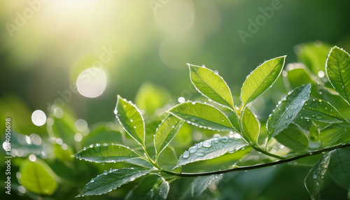 lush green leaves glistening with morning dew a tranquil scene of nature s gentle awakening in soft diffused light