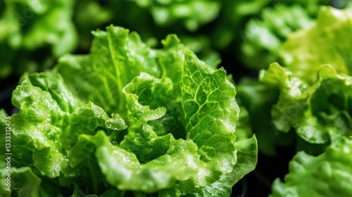 Lush green lettuce, close-up of vibrant leaves displaying fresh produce detail