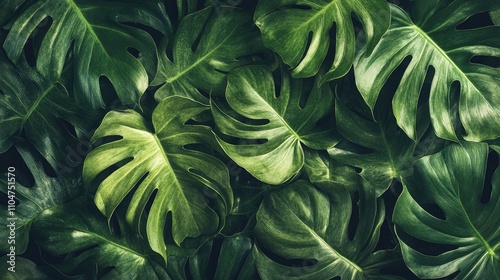 Lush Green Monstera Leaves Background for Nature and Garden Themes