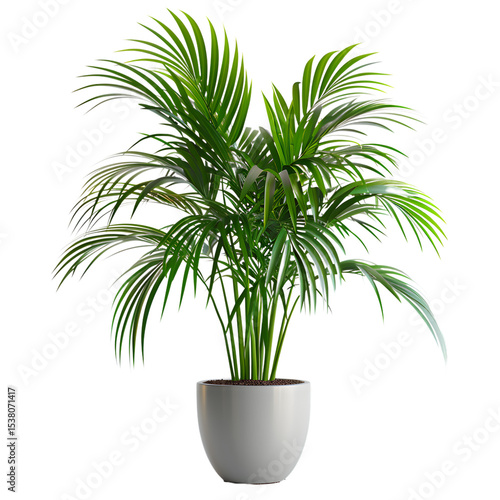 Lush green potted palm plant in a white planter on a black background a vibrant indoor plant