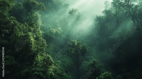 Lush Green Rainforest Fog Sunlight Beams