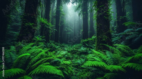 Lush Green Rainforest Path Ferns Trees Misty Forest Nature Photography