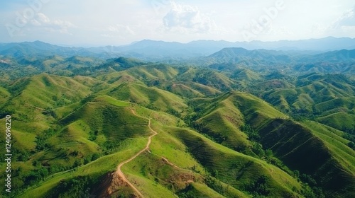 Lush Green Rolling Hills Under Bright Blue Sky with White Clouds