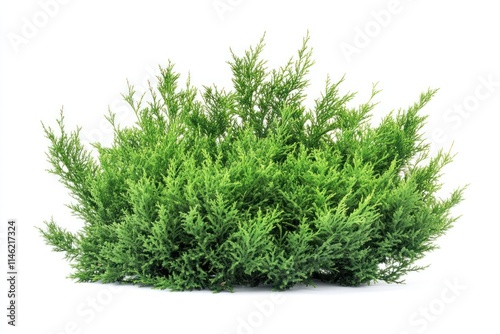 Lush green shrub isolated on white background.