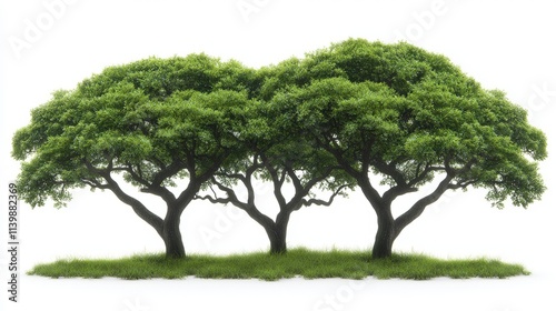 Lush Green Trees Nature Scene Isolated on White 3 Trees Forest Ecology Environmen