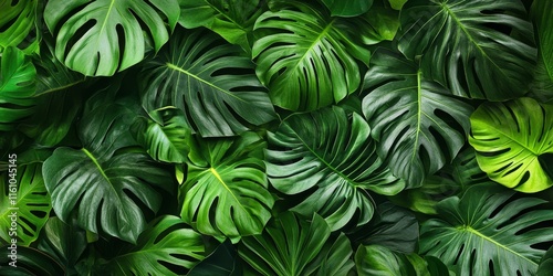Lush green tropical leaves create a vibrant background, showcasing the beautiful plant texture that enhances any design project with a natural aesthetic. The plant texture of leaves adds depth and