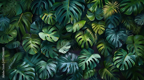 Lush Green Tropical Leaves Pattern