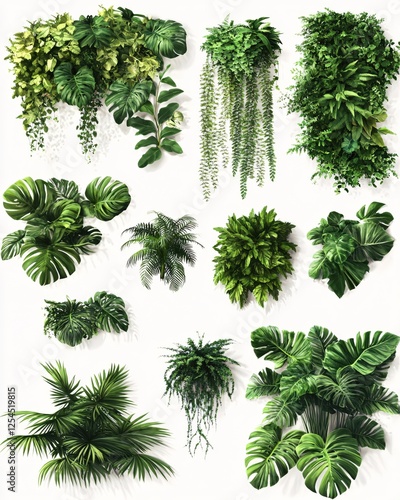 Lush Greenery Collection of Various Tropical Plants on White Background for Interior Design