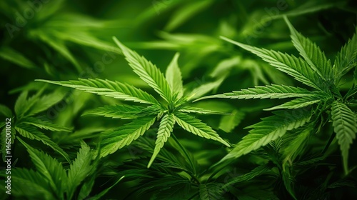 lush hemp leaves background
