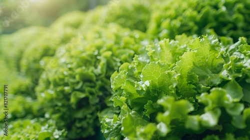 Lush hydroponic vegetable farm produces fresh green salads with copy space.