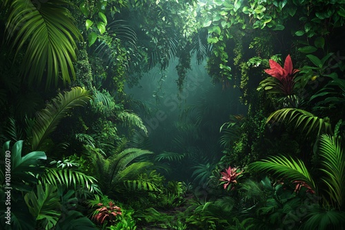 Lush Jungle Scene with Vibrant Greenery and Plants
