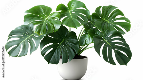 Lush Monstera Plant Thrives in a Modern White Pot, Isolated on White Background