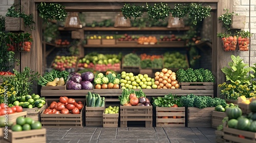 Lush Organic Vegetable Market with Fresh Produce Stalls in 3D