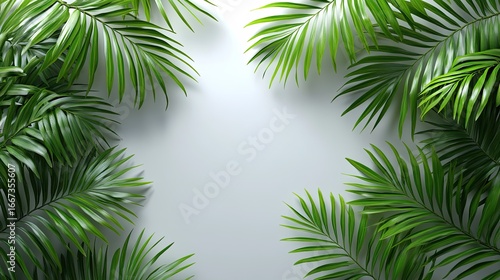 Lush palm fronds frame a serene white backdrop, evoking tropical tranquility