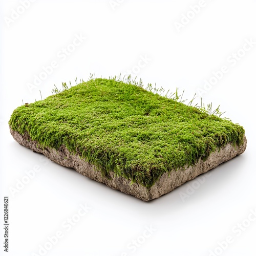 Lush Preserved Moss Square on White Background: A Vibrant Natural Texture for Design