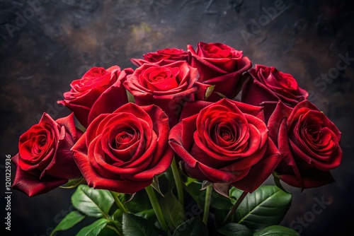 Lush Red Roses Bouquet Dark Background - Romantic Floral Photography