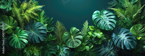 Lush Tropical Foliage Wall, Green Leaves, Nature Background, Design Texture