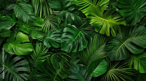 Lush Tropical Green Leaves Background: A Vibrant Display of Exotic Foliage