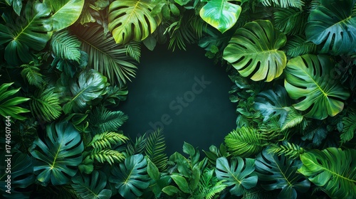 Lush Tropical Green Leaves Frame Jungle Foliage Border Blank Space Nature Background