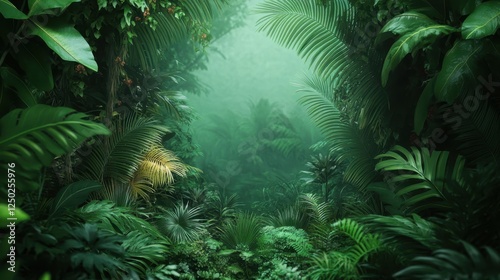 Lush Tropical Rainforest A Dense Green Paradise with Exotic Plants and Mysterious Mist