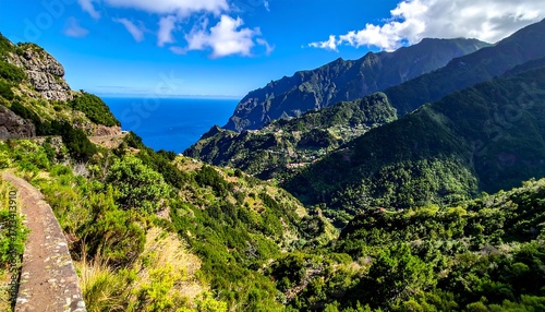 Lush valley, ocean view