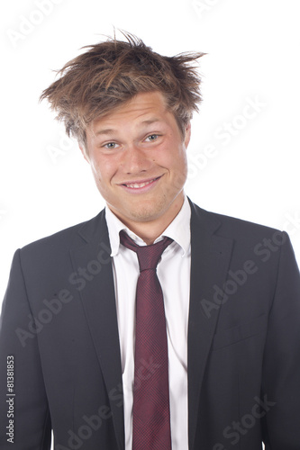 Lustiger Geschäftsmann mit wirren Haaren