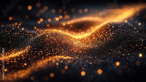 Luxurious and chic graphic design with a black base, with elegant gold lines and subtle splashes of light particles. The overall atmosphere is sophisticated and modern, with gold accents.