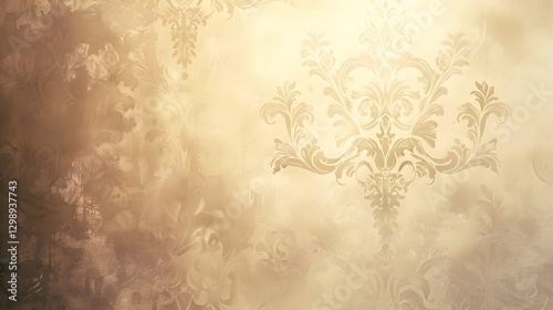 Luxurious Antique Damask Wallpaper with Intricate Baroque Patterns and Warm Muted Tones