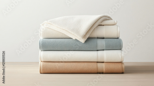 Luxurious bath towels stacked neatly, showcasing premium quality, softness, and elegant design. Perfect for enhancing your bathroom decor.
