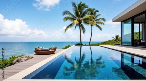 Luxurious Beachfront Villa With Pool and Palm Trees Under Sunny Skies