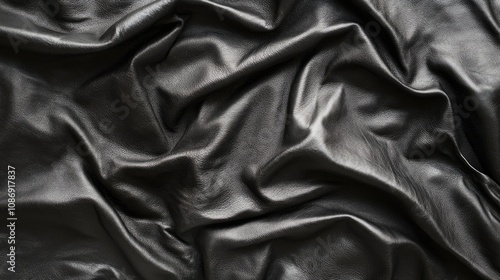 Luxurious black leather fabric with intricate folds and a smooth texture set against a simple background, showcasing its rich, elegant appearance.