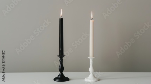 luxurious black only one candles and candlesticks minimalist style and platinum opulent silhouette minimalist pose clean white background in clean studio lighting product photography 32k