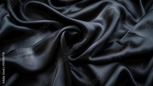 luxurious black silk fabric draped elegantly creating soft folds and highlighting subtle sheen and texture
