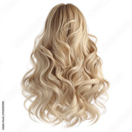 Luxurious Blonde Wavy Hair Cascading Down Back Isolated on White Background for Hair Extensions and Beauty Products