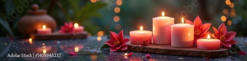Luxurious candles and spa essentials, candles, relaxation, amenities