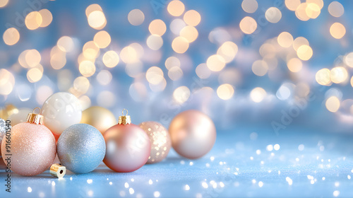 Luxurious Christmas Background with Festive Decorations, Ornaments, and Gifts
