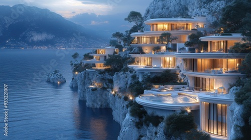 Luxurious cliffside villas overlooking a serene ocean view.