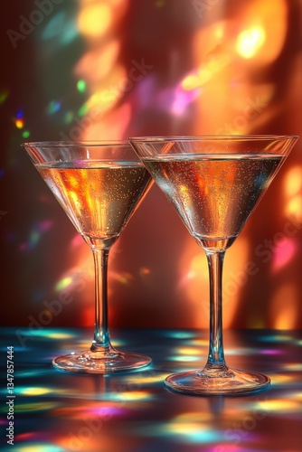 Luxurious Cocktails and Sparkling Champagne for Festive Party Celebrations - Elegant Nightlife Drinkware with Colorful Bokeh Lights Background