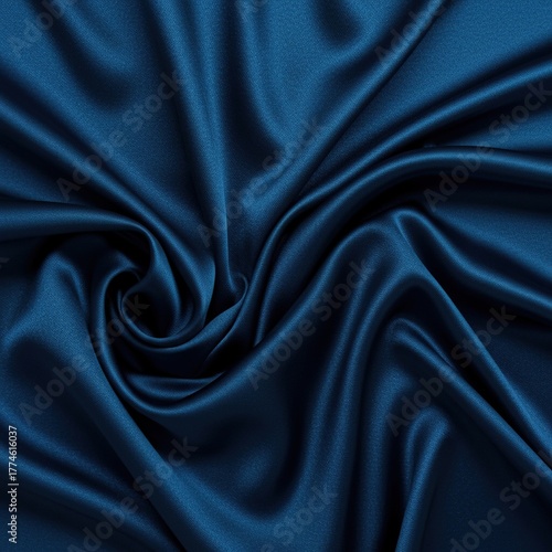 Luxurious deep blue silk fabric draped and wrapped, creating folds and waves suitable for elegant apparel design background texture ,navy ,design ,fashion